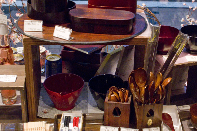 Beers from several Nagano craft brewers, including the excellent Shiga Kogen brewery, are available by the bottle or can to take home. They also sell fresh produce (including fresh wasabi root), dairy products, fruit and vegetable juices, frozen steamed pork buns, and wooden crafts and pottery made by local Nagano craftsmen.