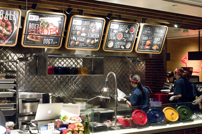 Three meatballs are served in a cardboard box along with mashed potatoes, rice and a mini-salad for around Y1000, or you can opt for smaller meatball subs or sliders. Seating is in the very lively food-court area of Hibiya Midtown, or you can get your meatballs to go.