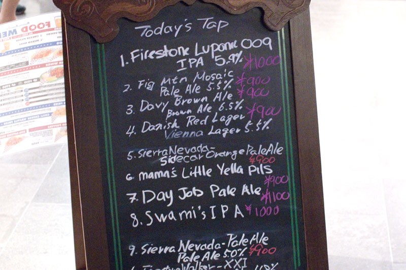 Located inside the Isetan food court in Yokohama Station's Joinus department store, this combination bottle shop and bar offers an impressive selection of US craft beers by the bottle or can, to drink here or take home. They also have ten taps of draft beer from a rotating list of American breweries like Firestone Walker, Figueroa Mountain and Three Weavers, although they tend to not list the names of breweries on their tap menu.