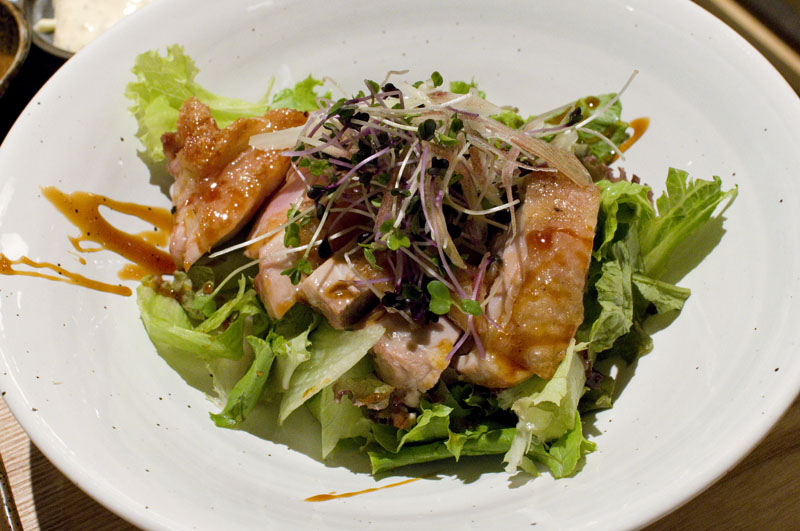 Fried oysters are a good standby for the craft-beer portion of the evening, while the delicately flavored grilled fish seems to go well with sake. Our charcoal-grilled chicken came with a well-dressed salad, but while the meat was tasty it could have spent a bit more time on the grill for extra crispness. The popular chicken karaage might be a better match for the beers.