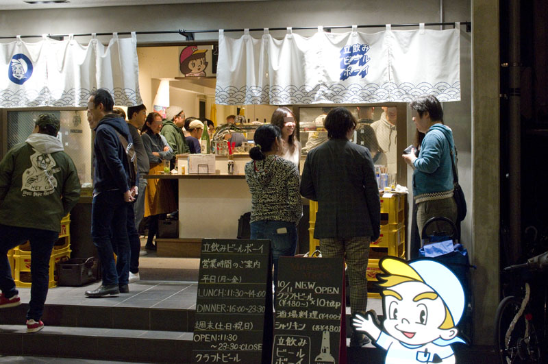 Produced by the popular Craft Beer Market chain, Beer Boy is a standing bar with nine taps of craft beers and an izakaya-style food menu. Food comes in small, snack-size portions and it's consistently well prepared and often creatively conceived. For example, the "ramen shop otsumami" platter features slices of grilled chashu pork. menma (fermented bamboo shoots) and a soft-boiled egg, Potato salad is topped with anchovy morsels.