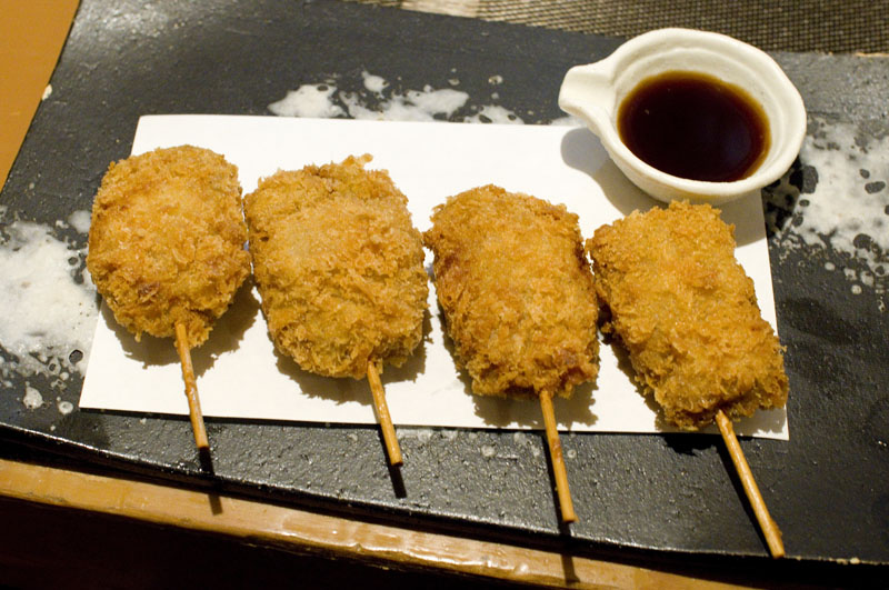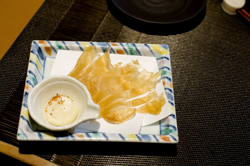 Grilled saffron cod (komai) served with mayonnaise is a specialty of the house and is quite delectable, as is the sake-marinated grilled gindara (sablefish). The grilled ray fin (eihire) seems to be meatier than average, and is a good sake companion. There's a wide tempura selection, although it can be a bit on the heavy side; fortunately there are plenty of other dishes to choose from. The maguro kushiage strikes a better balance among the fried items.