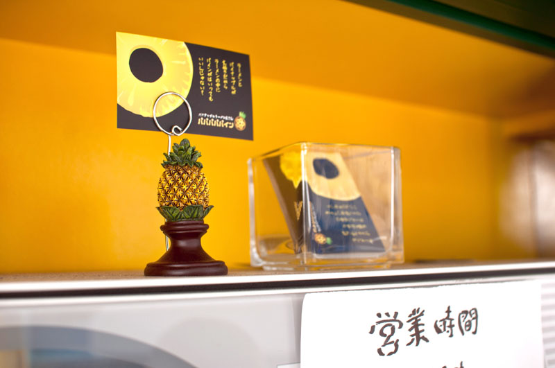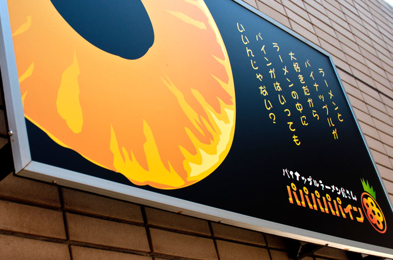 Papapapapine's interior is decorated from top to bottom with pineapples. Go for the shoyu with all the toppings (Y920). You'll get extra pork, extra chopped pineapple, and an egg that has been marinated in, you guessed it, pineapple juice. The soup isn't too sweet, just enough to match the saltiness of the soy sauce.