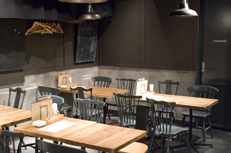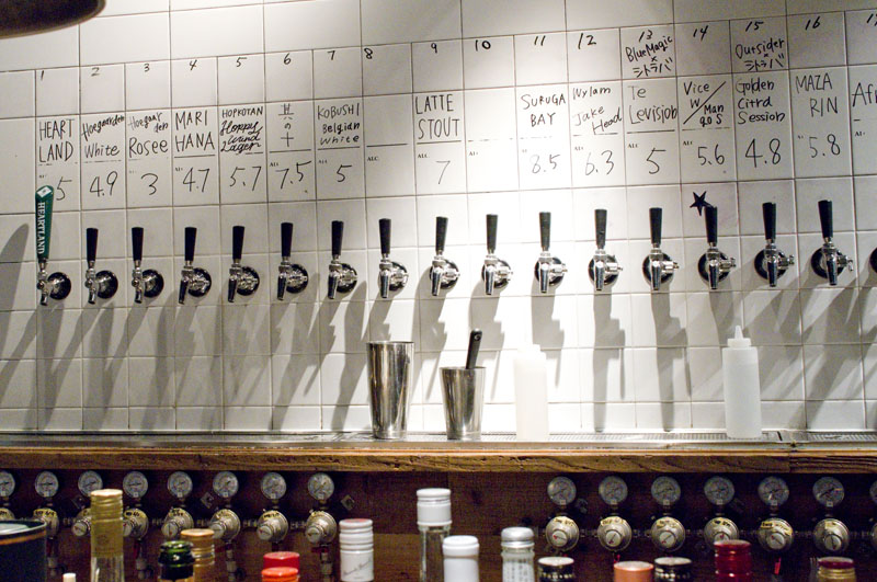 There's plenty of room to stretch out at comfortable low tables in back, high tables in front, and along two counters looking over the open kitchen and tap areas. The background music is a steady stream of pop-punk standards, similar to what they played when this was Craft Beer Market. Budget around Y3000-3500 for dinner with a few beers. The bar is open from noon on weekends.