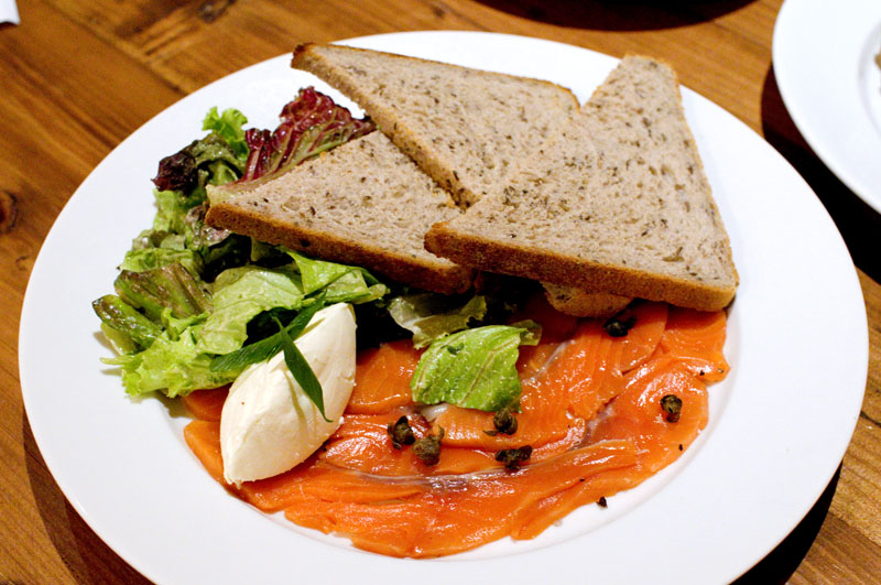 Worthy of special mention is the excellent "vollkornbrot" toast, which comes with the scrambled eggs and some other platters. Thickly sliced and soaked through with butter, it's more like a dense cake than a heavy bread in texture, and it's very flavorful. The toasted caraway-rye bread that comes with the lox platter is also notably tasty, complementing the salmon quite well.