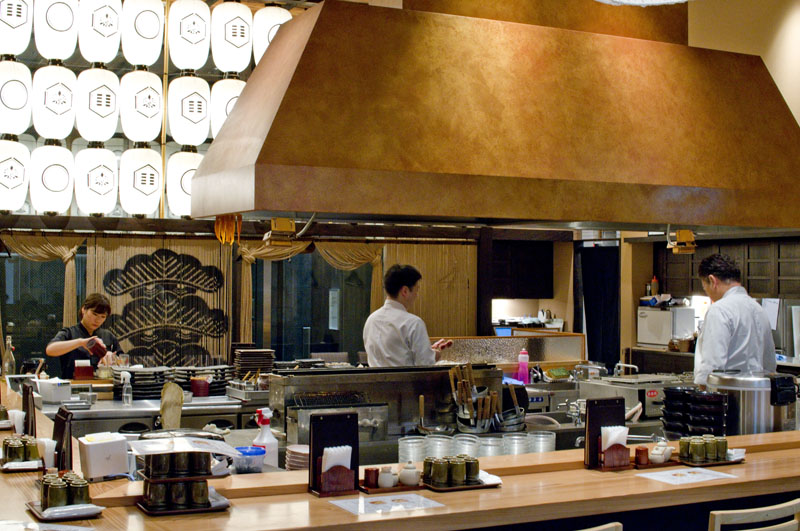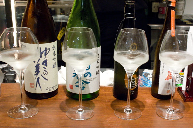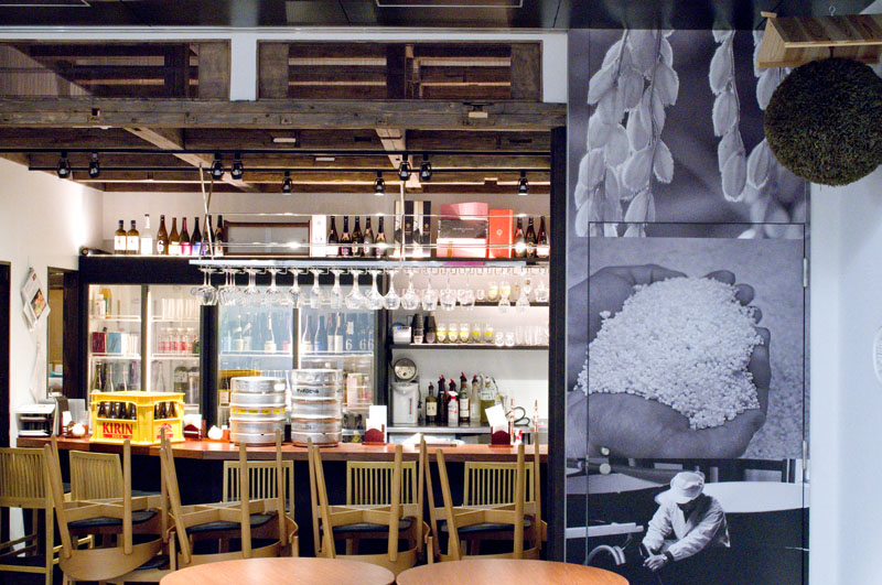 The bar area is usually quieter and more relaxed than the main counters, and you can chat with the staff about your sake options when they're not too busy. The specialty here is junmai-style sake from Akita, and there are usually a few dozen varieties to choose from.