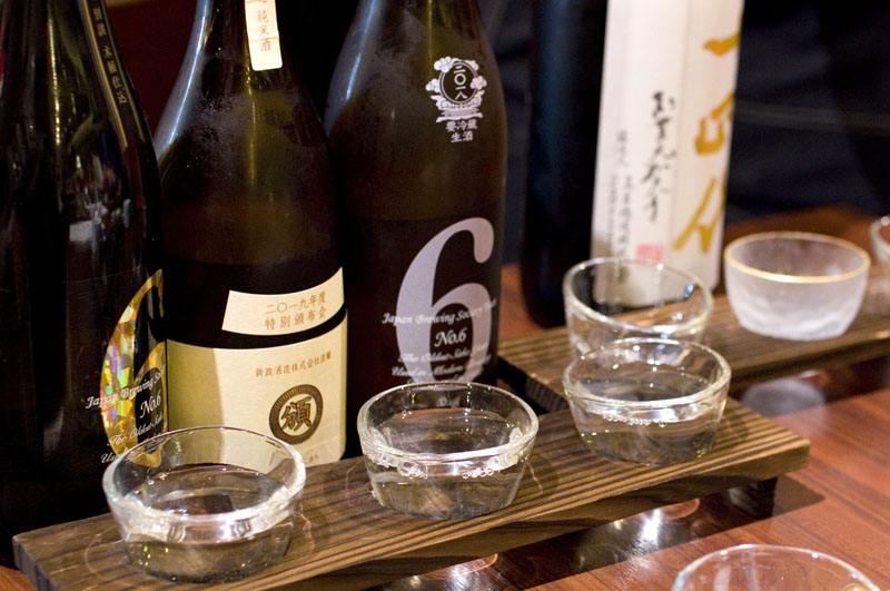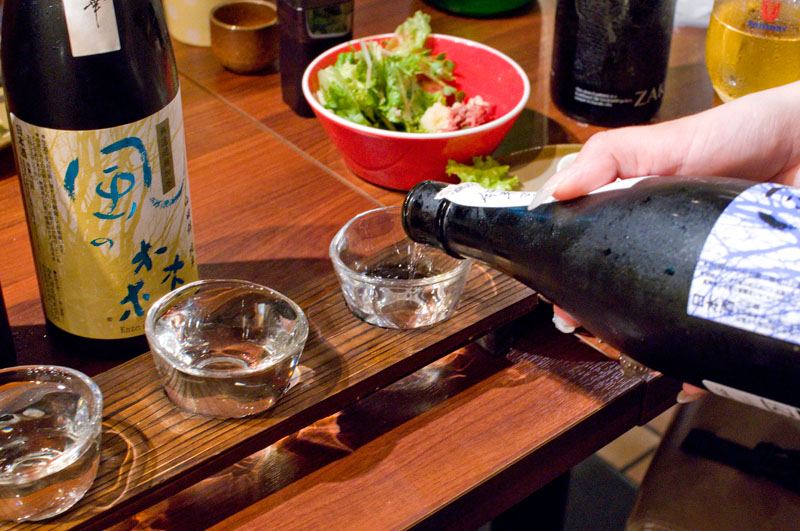 Tasting flights are one of the selling points here, and these include single-kura tastings from breweries like Kaze no Mori and Aramasa. Regular servings of sake come in proper glasses rather than tiny ochokko - a touch that serious sake drinkers will appreciate. They'll also be happy with the prices, which start at just Y240 for small tasting-size glasses and Y400 for regular glasses.