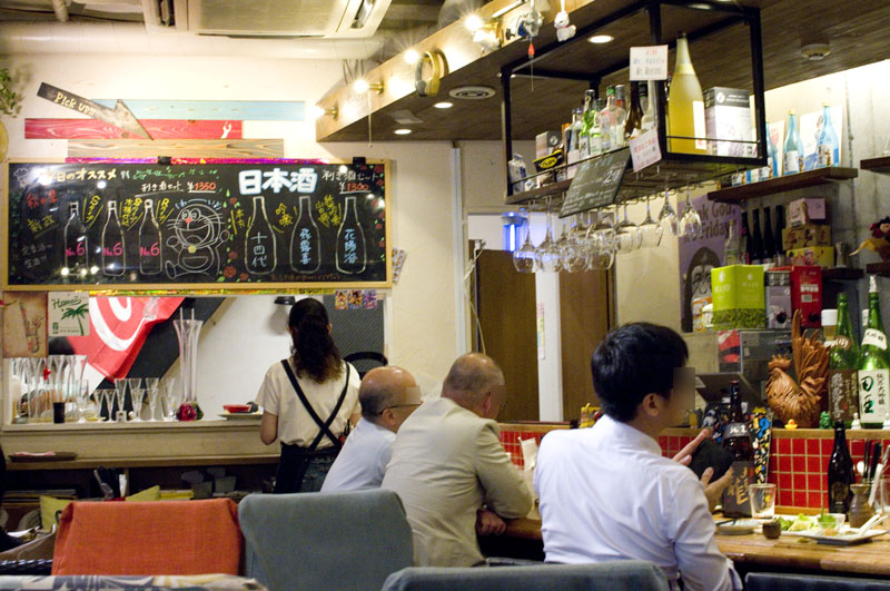 The mood at Mister Happy is festive, to say the least. The floor staff are relentlessly cheerful, telling jokes, leading toasts and pulling small pranks on unsuspecting customers. But this is more than just a boisterous izakaya - behind the hijinks, Mister Happy is a serious sake bar, stocking an impressive selection of more than fifty different sake from around the country, with a strong focus on sought-after premium labels.