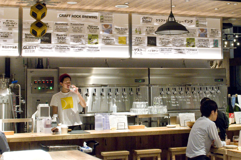 Craftrock's brewmaster was formerly a brewer at DevilCraft, and a recent taplist included a kolsch, an American wit, an oatmeal brown ale and several IPAs, some hazy and some not. The brewery's own beers are priced at Y600 for a half pint (250ml) and Y900 for a pint (473ml).