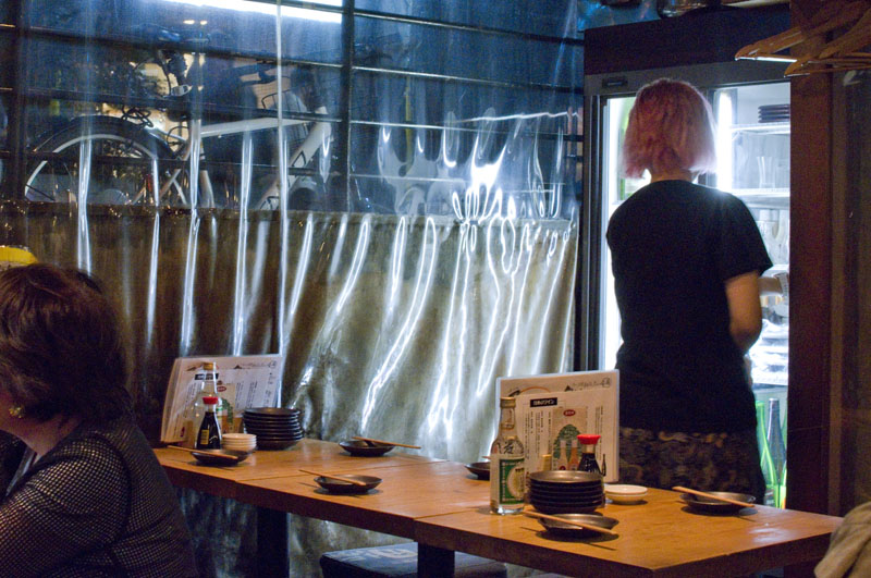 The atmosphere is hip and casual, with a mix of customers that skews a bit younger than your typical Koenji izakaya. Seating can be a bit tight but not especially uncomfortable, and service is friendly. There's an English menu, but it's worth checking the hand-written sheets for daily specials and the menu on the wall above the counter for additional sake choices. Budget around Y3000-4000 for ample food and drink at dinnertime.