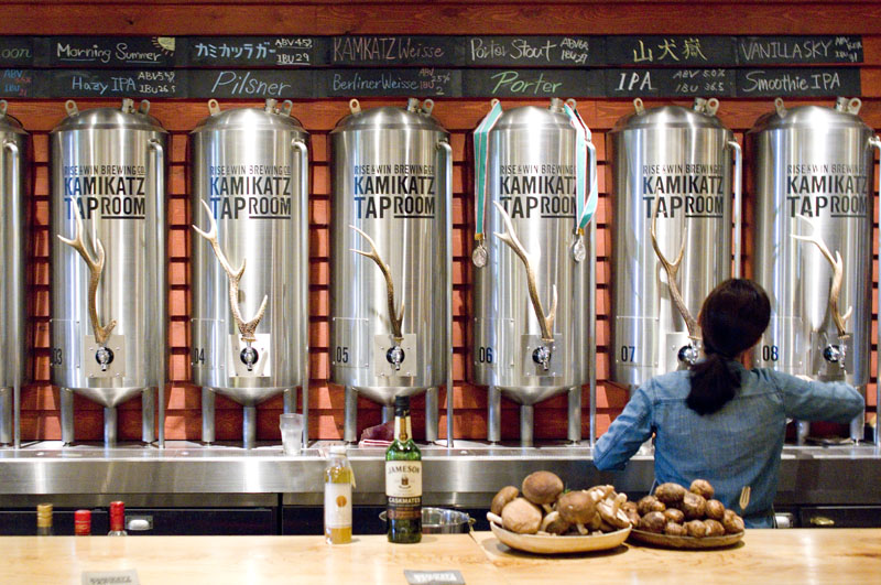 Kamikatz is run by Rise & Win Brewing Company, a craft brewery based in Tokushima Prefecture. As their official Tokyo taproom, they serve eight of the brewery's craft beers on draft, including some special seasonal brews. And unlike most beer bars in town, Kamikatz offers a full-fledged restaurant-style menu, with dishes like Roast Snapper, BBQ Chicken and Pulled Pork in addition to the usual sausages and french fries.