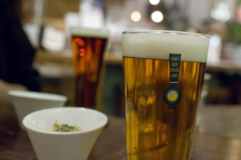 Craft Beer Server Land is popular for their wide selection of reasonably priced beers (they have 31 taps). There's also a small snack menu featuring eel fish and chips, home-made bacon and corned beef, and pizzas. High ceilings and ample greenery help give the bar area a spacious and relaxed feel. Beers start at Y550, with a Y380 table charge.
