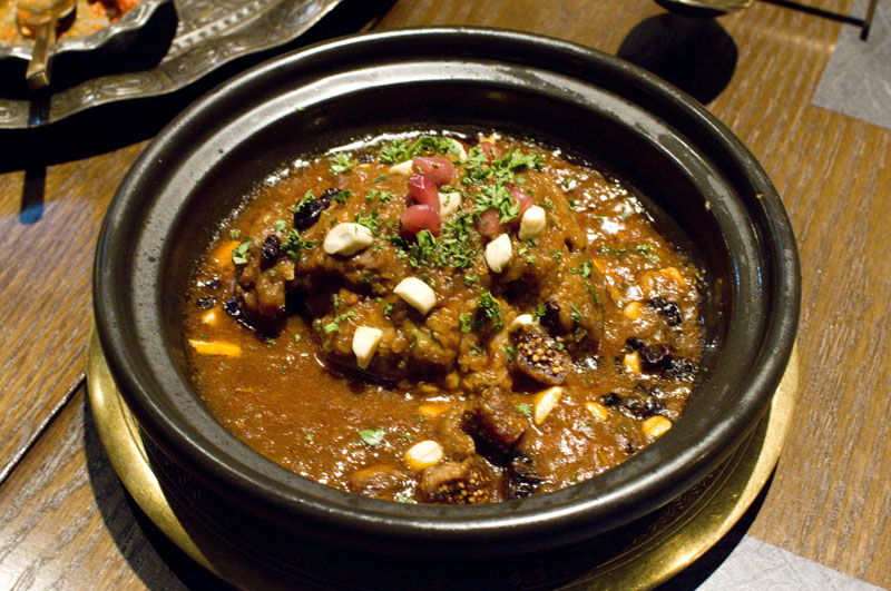 It might not sound very Middle Eastern, but the Arabian Burger is one of Carvaan's standout dishes. It's a voluminous lamb burger served with a harissa-tartar sauce and a Greek yogurt dip, and together they really bring out the flavor of the meat. The burger is topped with an appetizing combination of Feta and Monterey Jack cheeses, tabbouleh, grilled onions and tomato. Another menu highlight is the very meaty lamb tajine, infused with an invigorating blend of spices, swimming in a rich sauce ready to be soaked up by some aromatic cumin rice.