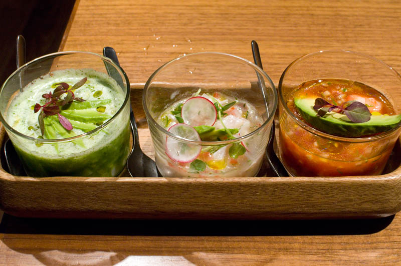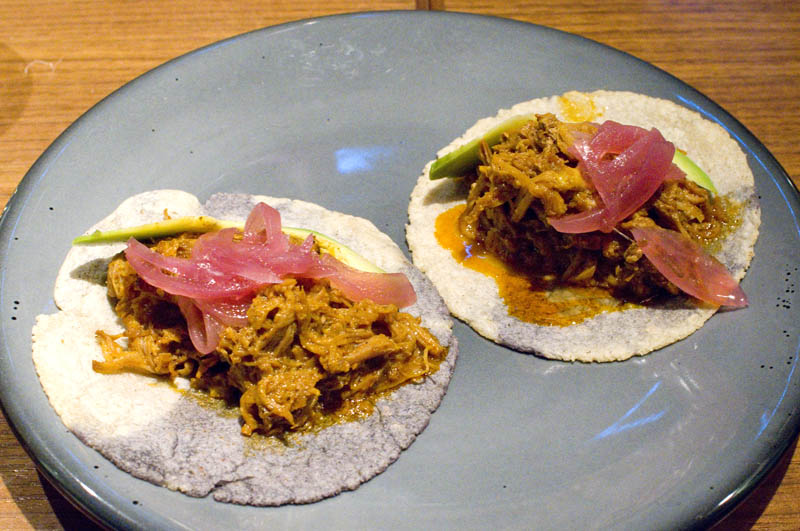There are a handful of main dishes like ribeye steaks and grilled pork chops, but you can easily assemble a meal just from ceviches, tacos, quesadillas and other small dishes.