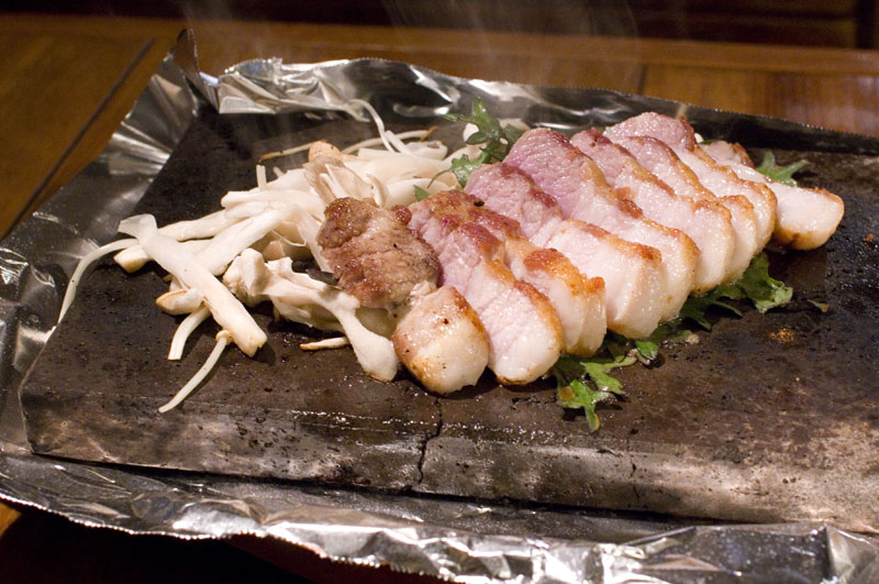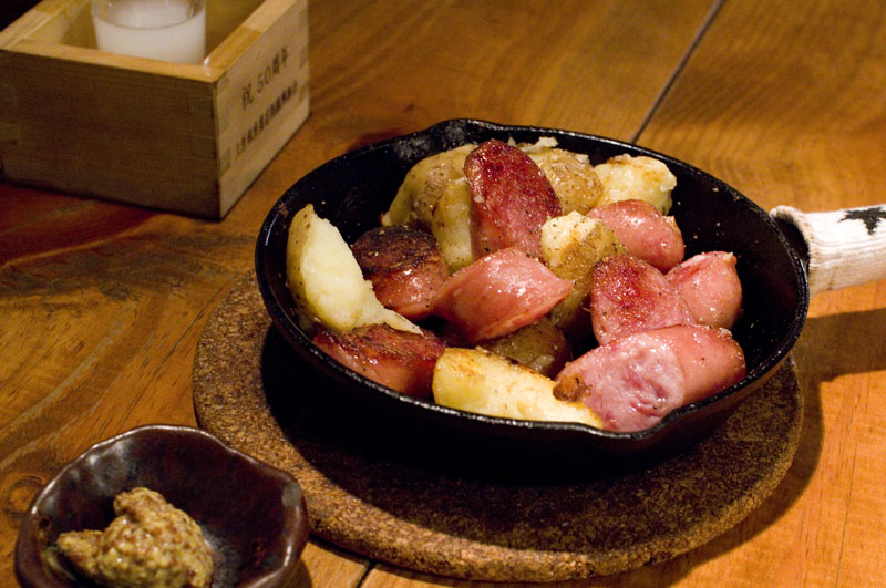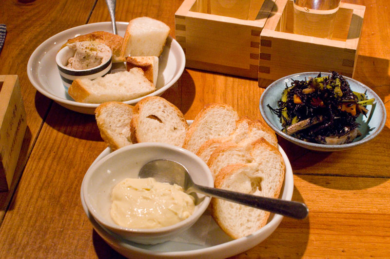The Iberico pork is generously marbled, and it's served on a portable grill so that it continues to sizzle at your table (or your counter space) as you eat it. There's a daily menu of small Kyoto-style obanzai-ryori dishes, and some recent highlights have included an excellent tofu-based "blue cheese," buttery-smooth pork rillettes, and Marche's always-popular house potato salad. All obanzai items are priced at three yen per gram, so a typical small dish will cost around Y350 or so.