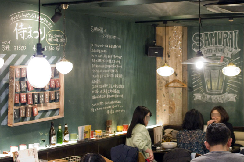 If you want to customize your experience even further, the "Samurai Matsuri" bowls give you a choice of three or four different toppings from out of the 25-30 on offer any given day, plus thirteen vegetables. Options range from lamb patties, lamb pot au feu, fried chicken, shirmp, and oysters to mixed mushrooms, cheese, and natto.