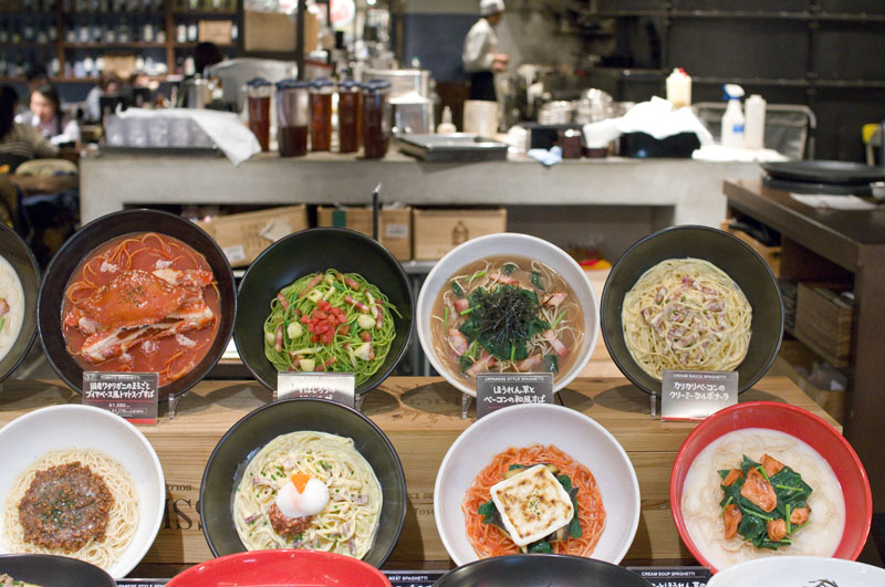 You can also mix and match some twenty-five optional toppings and choose from four different portion sizes, for a very customizable bowl. Pastas start at under Y1000, and side dishes and drinks are very reasonable as well.