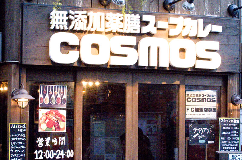 Among the half dozen or so soup curry shops in Shimo-Kitazawa, Cosmos is one of the most vegetable-focused. Soup curries are loaded with up to twenty different vegetables, along with main ingredients like chicken leg, lamb, and pork kakuni. You can choose from regular, tomato and tomato-cheese soup bases, and there's even a soupless option.