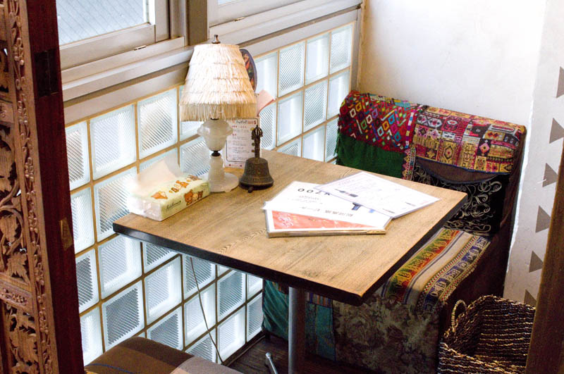 Over-the-top exotic decor seems to be de rigueur in Shimo-Kitazawa soup-curry establishments, and this shop is no exception. Each of the individual tables and booths seems to have its own decorative themes, and there's a collection of very odd bric-a-brac next to the cash register for your entertainment while you're waiting to pay.