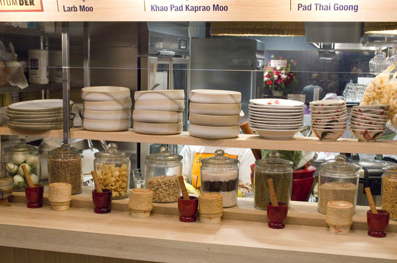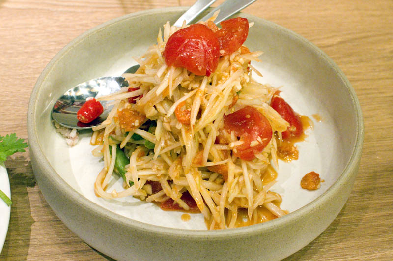 They serve four different variations of the shop's namesake spicy papaya salad - fewer than the Yoyogi branch's eight types, but still impressive. White and black sticky rice and boiled rice noodles are refreshing alternatives to the usual jasmine rice, which is also available. Despite its small size, the menu is fairly varied, and it's worth exploring to find your own favorites.