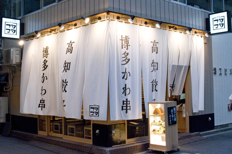 Skewers of Hakata-style grilled chicken skin from Kyushu and Kochi-style gyoza from Shikoku are among the geographically diverse dishes at this regional-cuisine izakaya. They seem to specialize in offbeat drink-friendly fare - other popular items include truffle gyoza, foie gras with horsemeat on bruschetta, horsemeat sashimi platters, spicy noodles and Mentaiko of the Day. The drinks list focuses on shochu cocktails and highballs. Budget around Y2,500 for food and drink.
