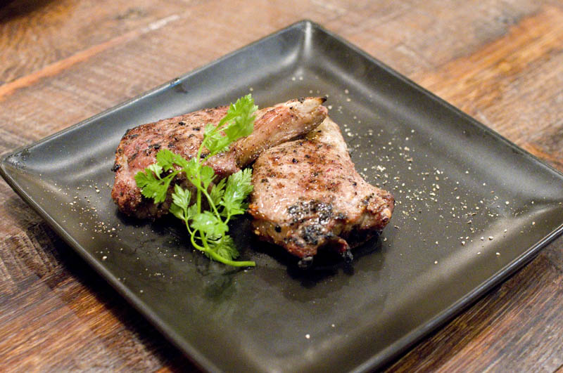Charcoal-grilled dishes are another specialty, and the roster includes lamb, foie gras, duck, truffle-chicken tsukune and organ meats with cilantro. The well-seasoned lamb chops are particularly appetizing, with just a hint of charring from the grill.