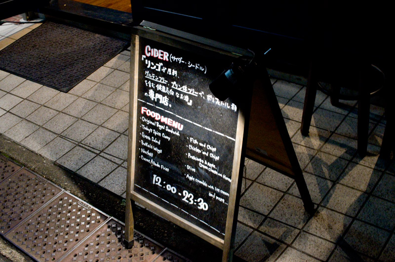 Inspired by his experiences when living in England, owner Mitsuru Takeda opened Cidernaut with the aim of introducing the joys of craft cider to Tokyo. The bar's twelve taps dispense around eight or nine different ciders at a time, with the remainder devoted to craft beer. Ciders are a mix of US and British imports with a few domestic brands, covering a range of styles.