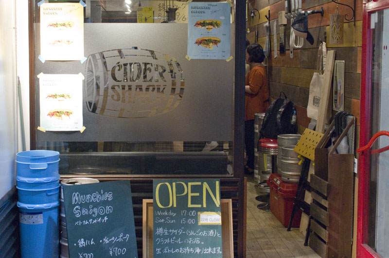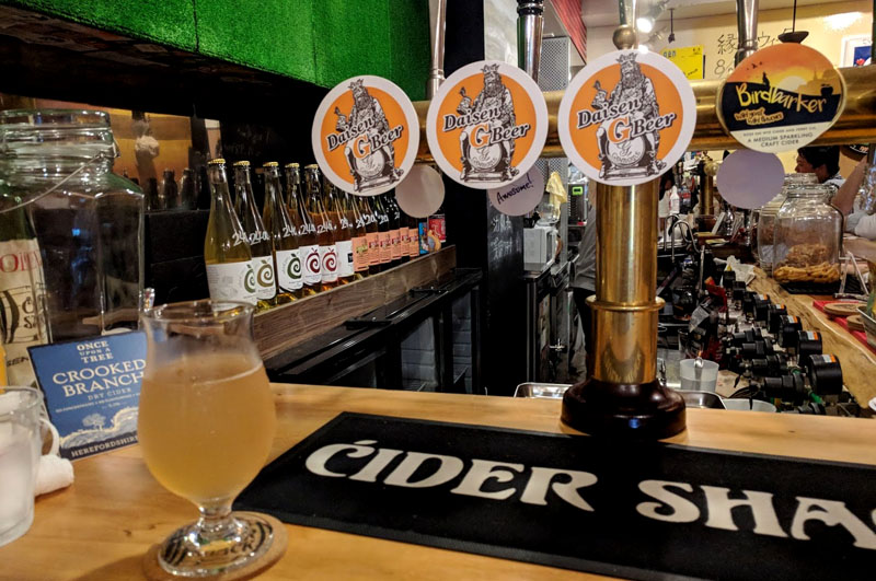 Cider Shack is one of a handful of spots in Tokyo where you can find craft cider, both on draft and by the bottle. Along with ciders from England and Nagano Prefecture, they also serve craft beers (mainly from Japanese breweries TDM1874 and Daisen G), with three taps devoted to cider and five to beer.