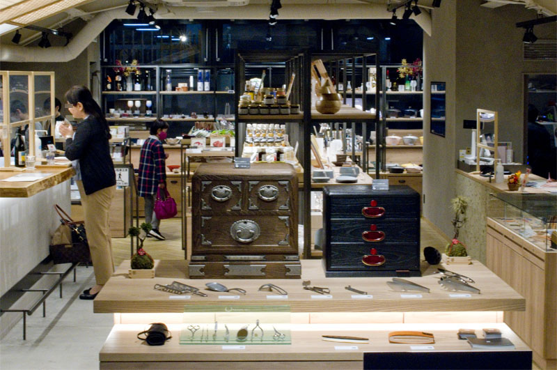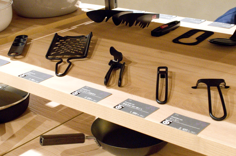 The rest of Niigata 100 (it's pronounced "ichi-maru-maru") is filled with beautifully crafted glassware and ceramics, specialized chef's knives, metal kitchen utensils and more. Detailed biographies of the local Niigata craftsmen who make the products can be found alongside their work.