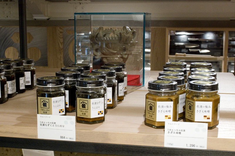 Niigata produces more than just sake and beer of course, and the shop sells a range of unusual regional delicacies, from Sado Island's Le Lectier pear jam to heirloom-breed pork sausages, pickles and miso paste. There's a surprising variety of salmon products to explore, and you can bring home a package of Niigata's famous Sasa Dango - sweet bean-paste and mugwort dumplings wrapped in bamboo grass.