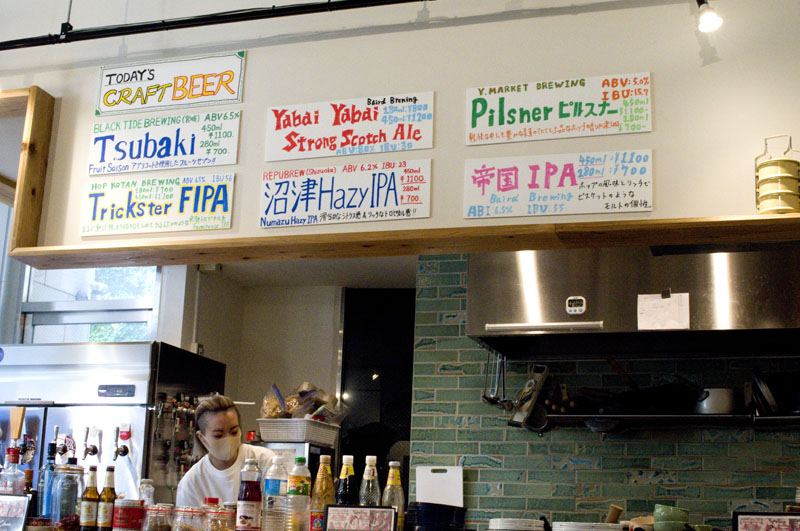La La Chai serves Thai food and craft beer, with a half-dozen taps dispensing beers from breweries like Y Market (Nagoya), Black Tide (Miyagi-ken) and Yatsugatake (Nagano). The food menu features lots of grilled meats and a number of southern Thai dishes like pork-rib curry, Phuket pork belly stew, and southern Thai rice salad.