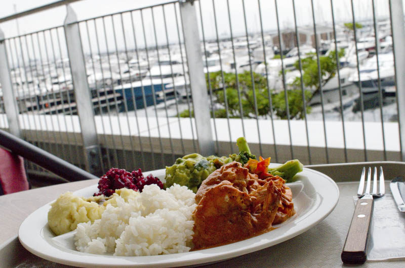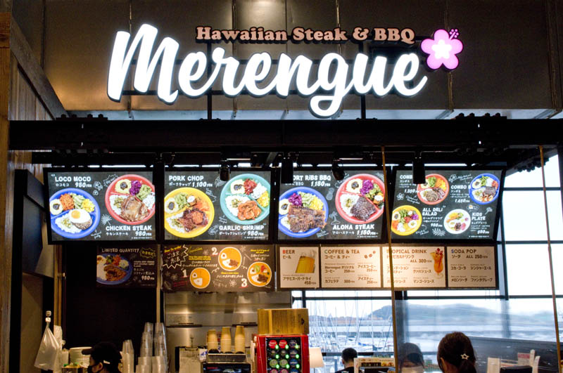 Merengue serves Hawaiian plates featuring garlic shrimp, Loco Moco and other island favorites, and they're one of the more interesting dining options at Yokohama Bayside Marina. Plates come with your choice of three deli-style side items as well as rice and mashed potatoes with gravy.
