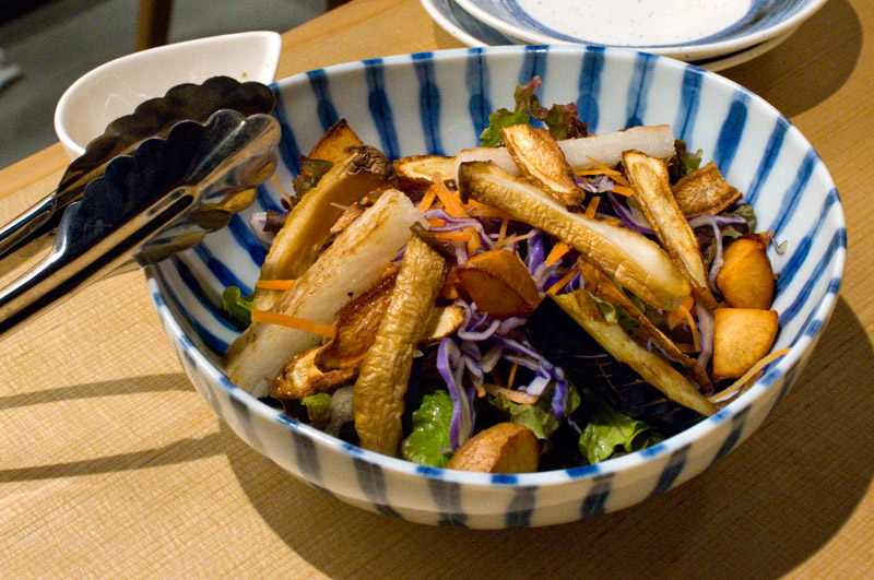 The food menu seems to play a supporting role to the sake, with simply prepared dishes based on local ingredients like mackerel, horsemeat and Takkogyu beef. We enjoyed several dishes made from Shamo Rock chicken - a local hybrid of shamo (a bird bred for fighting) and Plymouth Rock chickens. The tsukune was especially good, as were the ringo-tsukune (pickled apples), both of which go very well with sake.