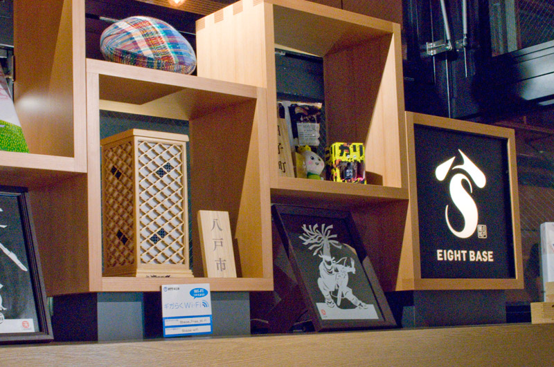 At first glance Eight Base looks like your typical prefectural antenna shop. There's a retail section up front selling crafts, produce and drinks from Aomori Prefecture, with a small dining area in the back where you can sample local dishes.