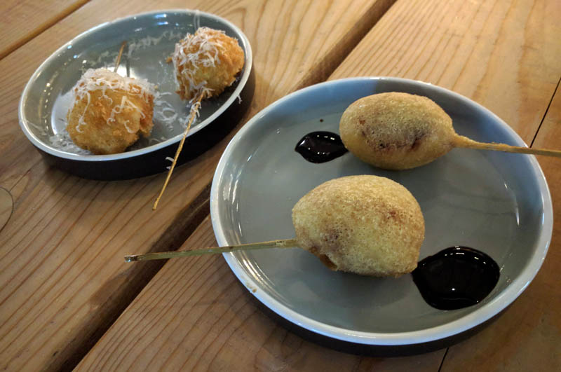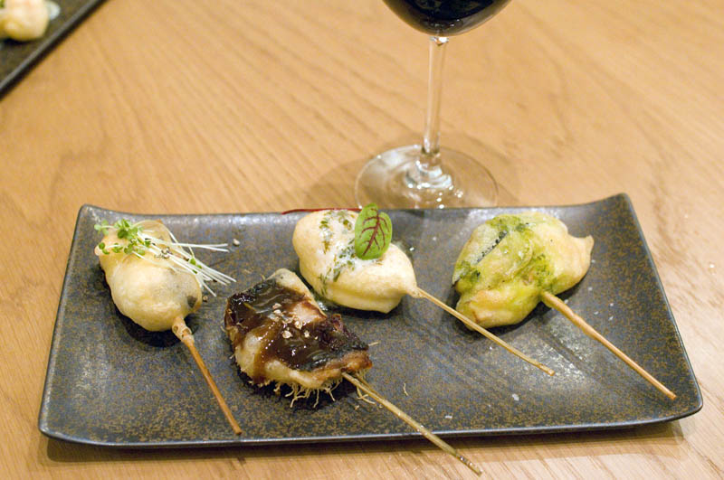 "French kushiage" is the unusual specialty at Beignet. Deep-fried morsels of meat and seafood are assembled with a creative flair, and served alongside original French-style side dishes and international wines. The artful presentation and intriguing match-ups of ingredients, sauces and garnishes add an element of surprise and fun to the dining experience.