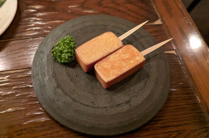 As promised by the name, this intimate dining spot specializes in smoked foods, ranging from smoked cheeses and sausages to skirt steak and spare ribs. The smoked salmon, served in generous portions, is especially recommended. Drinks include smoke-themed cocktails as well as wines by the glass. Budget around Y3,500-4,500 for food and drink.