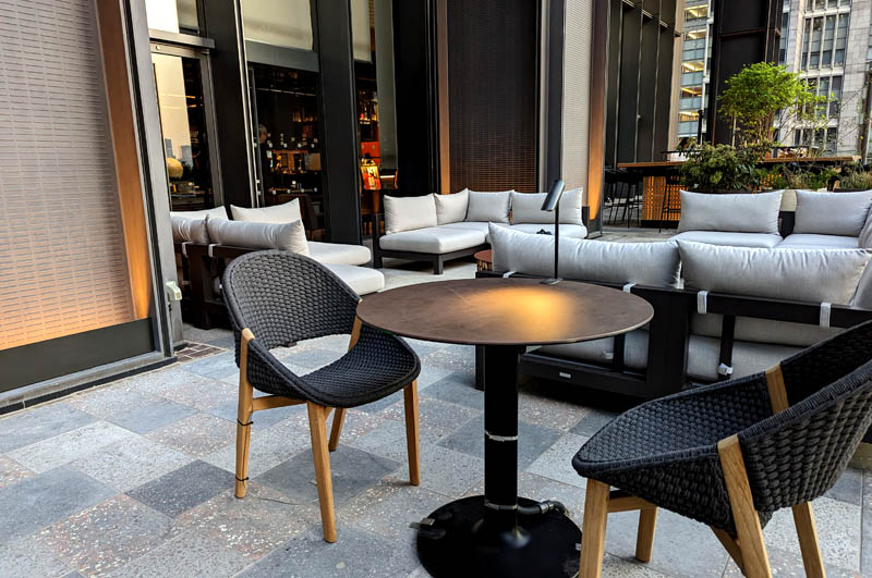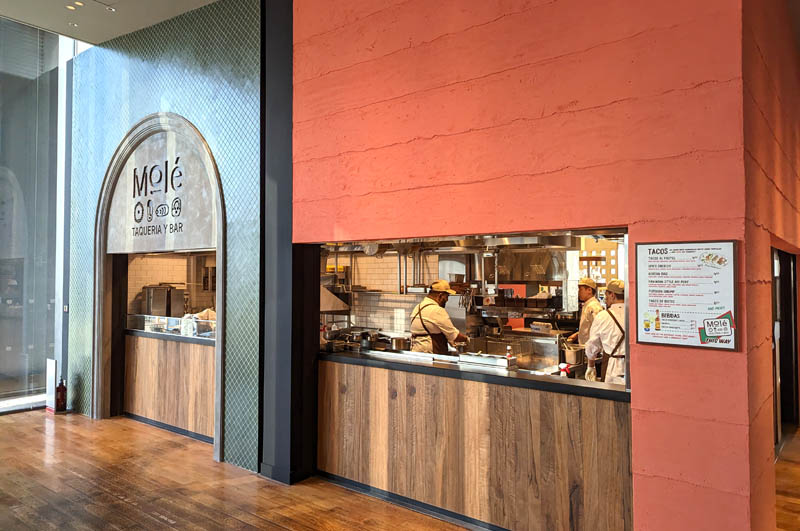 Should you opt for outdoor seating you can order at the take-out window, at which point you'll receive a buzzer that will vibrate when your order is ready to pick up. You'll also be able to also order bottles of wine or other drinks separately from the terrace bar or from one of the other restaurants on the floor.