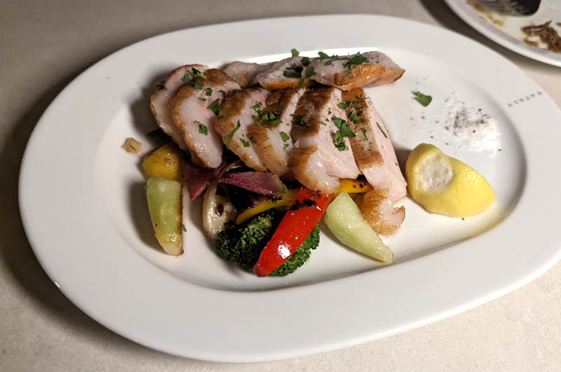 Arancini (cheese-rice croquettes) starters are quite tasty, complemented by a piquant tomato sauce, while mains of grilled duck and grilled pork are succulent and well seasoned. Overall Eataly's cooking represents the more the traditional end of Italian cuisine - reliably solid fare without surprises.