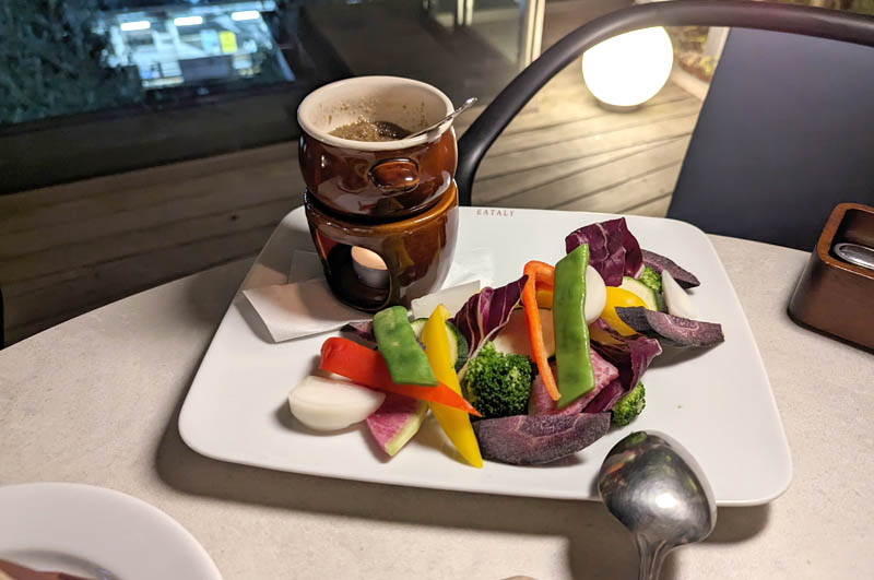 The dinner menu focuses on well-constructed pizzas and a wide variety of pasta dishes, supplemented by a handful of starters and mains if you're putting together a full-course meal. There are charcuterie and mixed-cheese boards to accompany drinks, as well as an appetizing bagna cauda plate with beautifully presented fresh vegetables.
