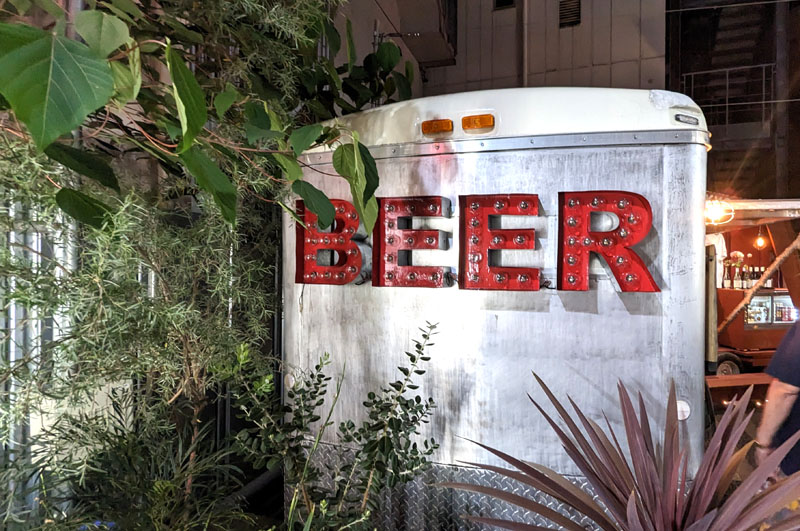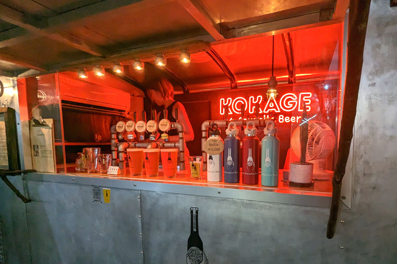 Parked in one corner of the trendy B-Flat Commune market area hidden in the back streets of Omotesando, the Kokage beer truck is perfectly set up for seasonal outdoor beer drinking. They serve five beers from Karuizawa brewery Cocono Hop Co., ranging from white ale to stout.