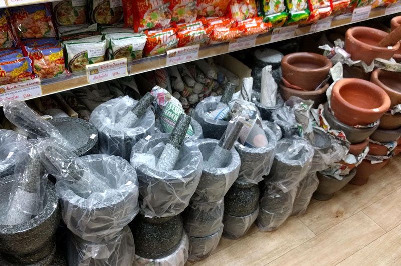 At the front of the shop is a section devoted to Thai cookingware and oversized mortar and pestle sets for grinding your own spices. There's also a good selection of magazines and souvenirs from the old country, and freshly prepared desserts.