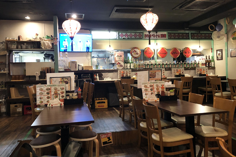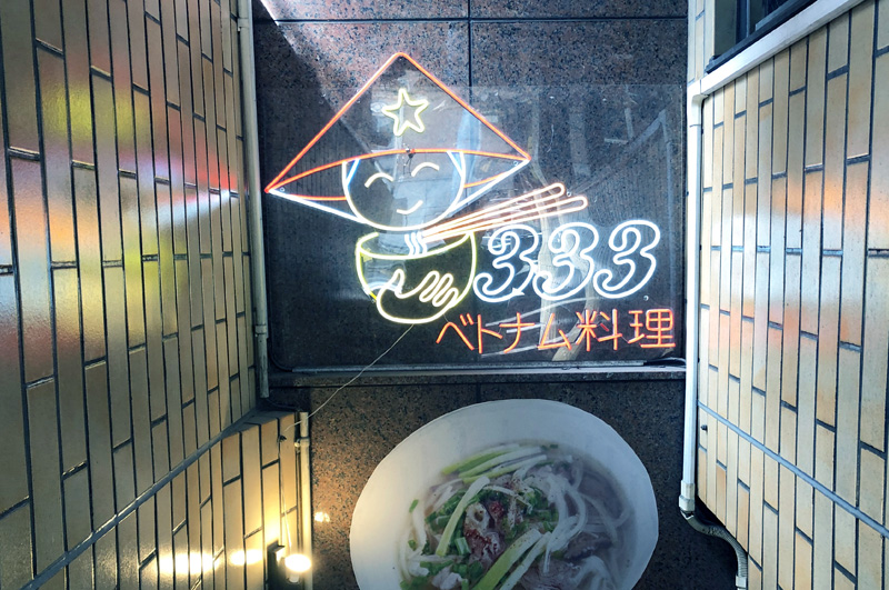 Decorated with lanterns and neon signage, this basement Vietnamese restaurant offers up very tasty dishes in an unpretentious izakaya-style setting. Named for the famous Vietnamese beer, 333 ("Bababa") is crowded at lunch and dinner with local young Japanese office workers and Vietnamese students.