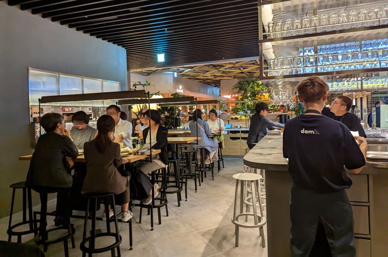 Budget around Y3,000-4,000 for food and drink at dinnertime, or less if you're just making a quick stop as part of a bar-hopping tour of the T-Market restaurant complex where Dam is located. Bring a credit card or a Suica card, as payment is cashless.