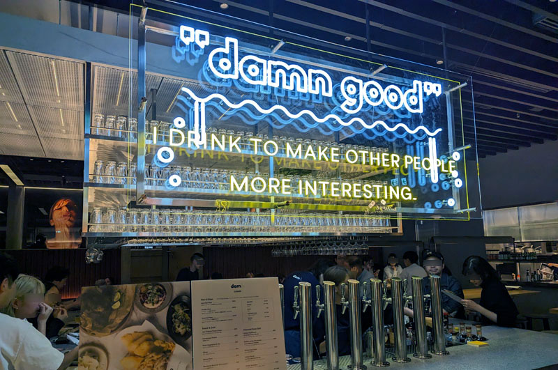 As the name indicates, Dam is also a brewery, and they currently brew two beers on premises. In addition, various beers from domestic brewers like North Island, Fukuoka Craft Beer and Y Market are dispensed from four guest taps. Guest craft beers are priced at Y980 and Y1,400, while Dam beers are a bit less.