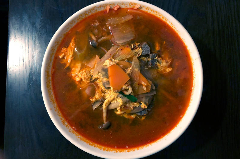 Ah, the kindness of Korean ajuma (aunties), who have over the years loaned me their floral aprons, cut up my reimen noodles with scissors, or given me extra side dishes (as if I needed fattening up). Two smiling Korean aunts run this hole-in-the-wall basement lunch spot and serve up hearty homestyle cooking with a huge helping of hospitality.