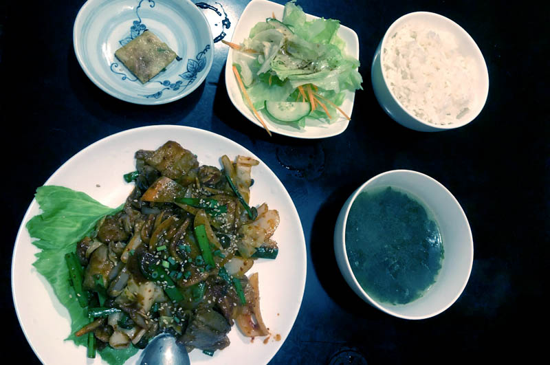 All the lunches come with salad and a couple of side dishes, usually silky tofu and Chijimi pancakes, and sometimes a delicious wakame soup, full of seaweed and pepper. Ridiculously, all these filling and tasty lunch sets come for under 1,000 yen!