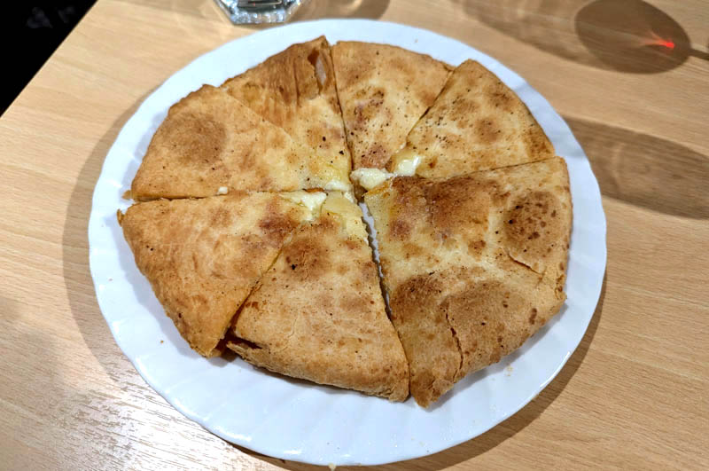 Khachapuri Penovani is another revelation. Described on the in-shop menu as Georgian pizza, it seems closer in character to a grilled-cheese sandwich, but one held together by an excellent flaky pastry instead of bread. With its thick layer of gooey cheeses it ends up being more filling than expected.