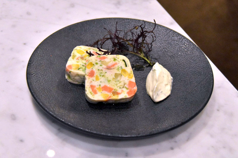 The Salmon Vegetable Terrine is lighter but still rich, livened up by a fresh-tasting horseradish sauce. Pork Tongue and Spinach Pate is satisfyingly meaty, and the Oyster and Scallop Terrine, served warm, is full of deep flavors that will perk up the appetite.