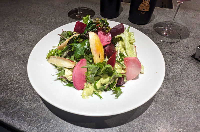 The pasta menu is smaller, but features interesting variations like mountain-vegetable (sansai) and venison meat-sauce pastas. The Setagaya Salad showcases fantastic fresh vegetables sourced from a small farm in nearby Setagaya-ku. There are also good seafood appetizers, since Tototo is a spin-off from tuna specialist Maguro Market just down the block.