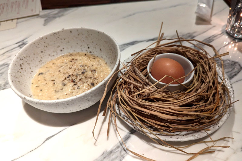 One especially entertaining dish is their Risoni Carbonara - made with a small pellet-shaped pasta called orzo (aka risoni) rather than spaghetti. Instagram-ready, it comes with a soft-boiled (onsen) egg, whimsically presented in a bird's nest, which you crack open and add to the pasta yourself. The classic combination of sharp cheese, fresh egg and black pepper works its magic, with the orzo providing a chewier texture than the usual spaghetti.